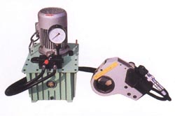 一、產(chǎn)品簡介 液壓扳手-YK中空式液壓扳手最大限度的采用高強度輕金屬,一體成型動力頭,全面提高強度及壽命;較大的扭矩/重量比,雙作用,高速,轉角大,效率高, 一只動力頭可配合多種工作頭使用,工作范圍廣,360°×360°旋轉軟管接頭使在狹小的空間內(nèi)使用方便,絕不會出現(xiàn)機構卡死, 扭矩重復精度高達±3%,松開時不需其它工具,存貯箱保護扳手頭避免損壞,浸水和污濁,運動部件少,經(jīng)久耐用,維護方便。 本扳手體積小,力矩大、預緊準確。它廣泛適用于冶金、電力、化工、機械、通信等行業(yè)的機械設備和設施,重要螺栓聯(lián)接的安裝及拆卸維修,能方便快捷地完成您的裝拆螺栓任務,同時可有效地保證您所需的扭矩值。